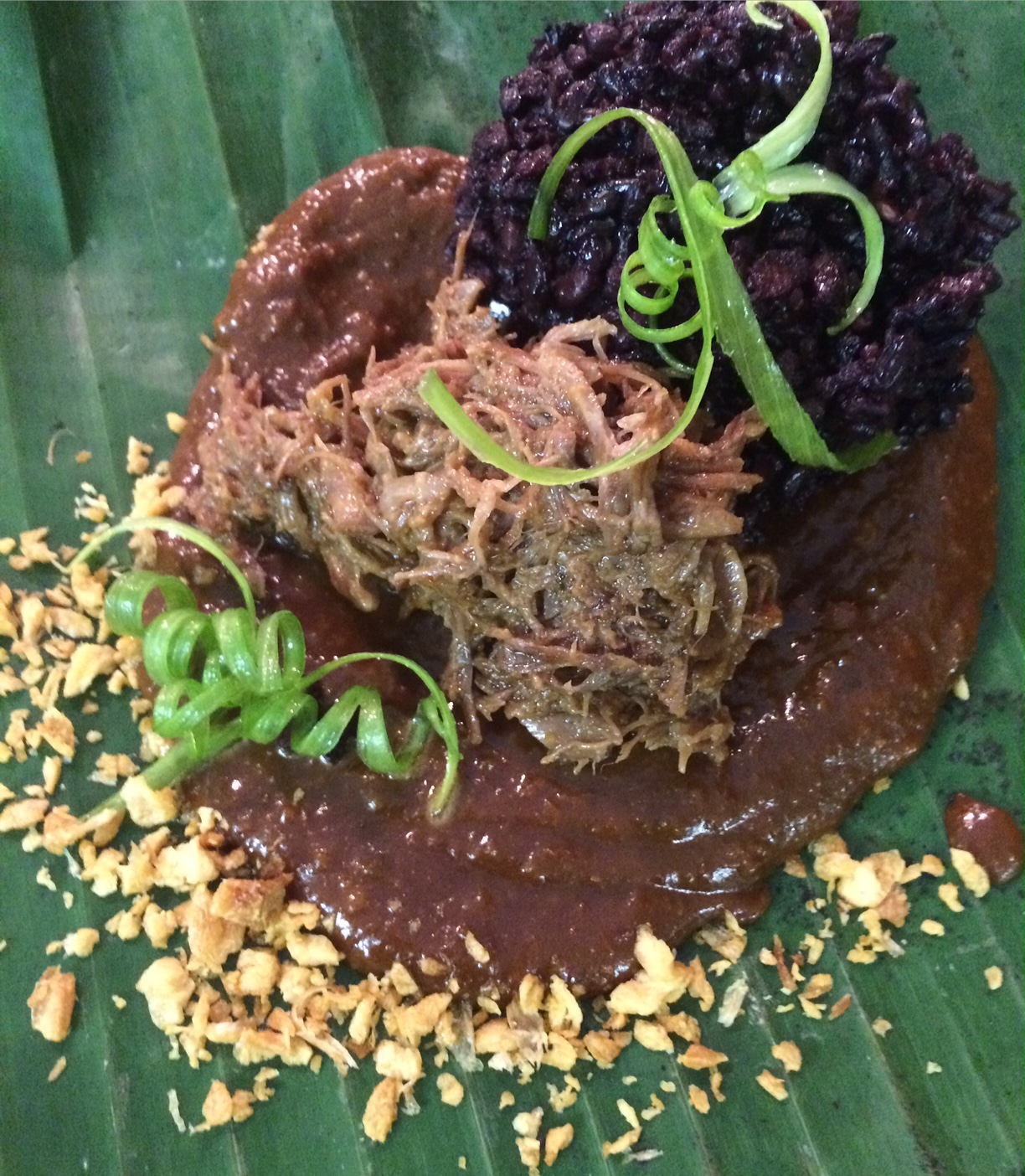 peanut molé on a fresh banana leaf . . .